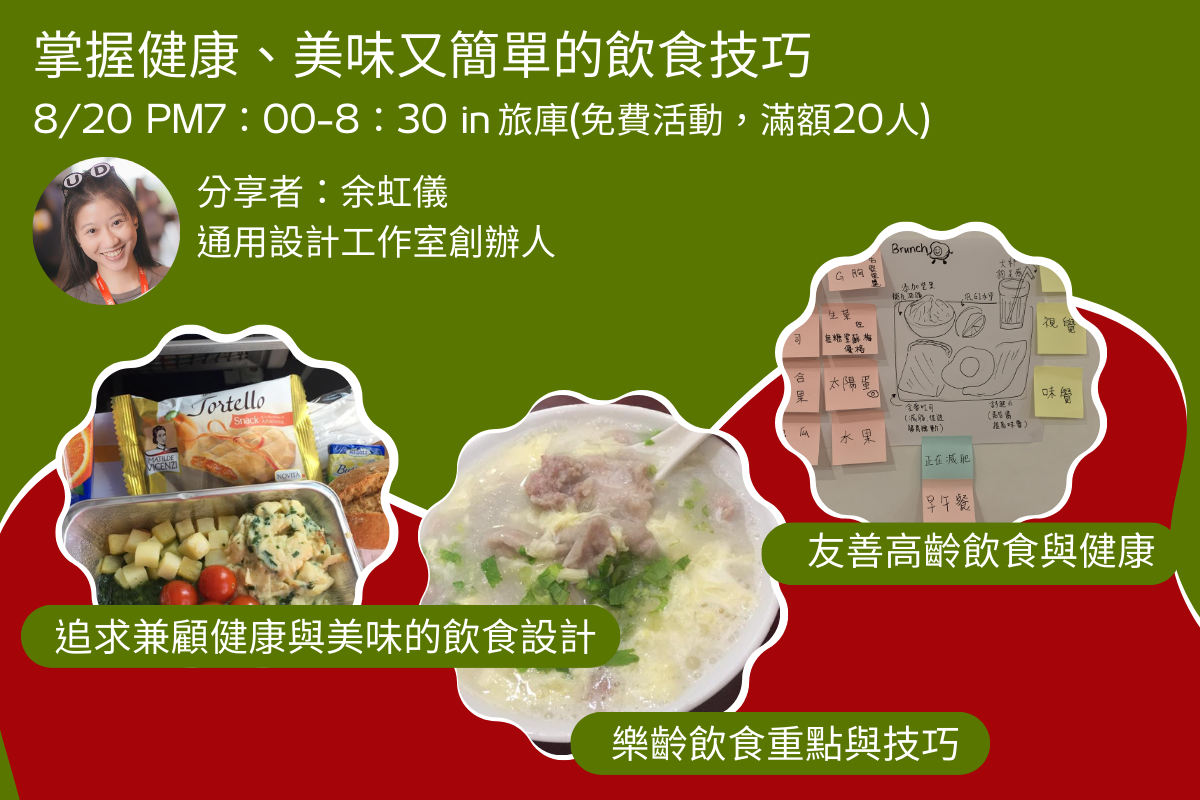 掌握健康、美味又簡單的飲食技巧分享會2024.8.20 -PM7:00-8:30 in 彰化旅庫