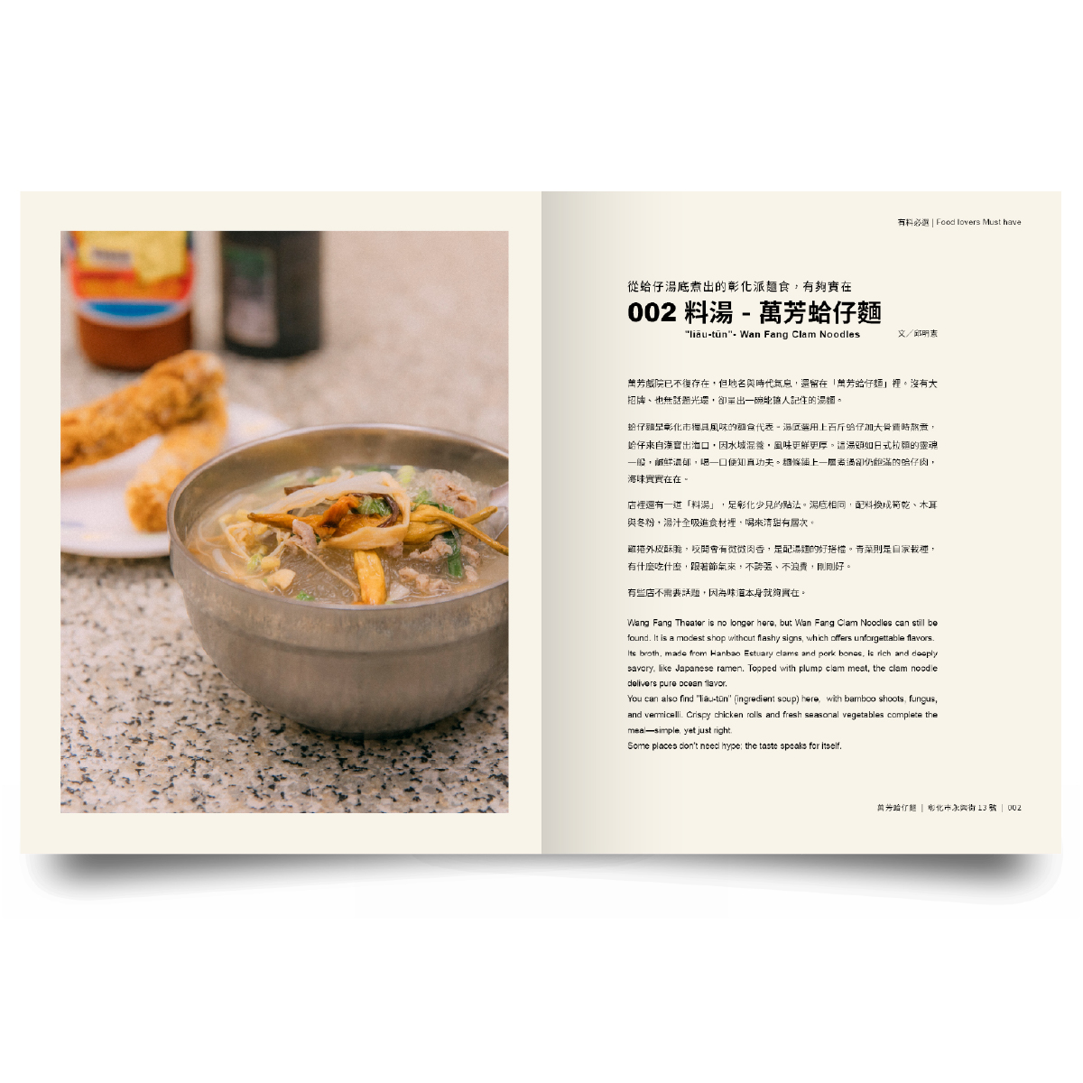 這本書以地方視角記錄了100個料理、人文相關的「有料」,從經典小吃到鮮為人知的巷弄風味,一點一滴勾勒出彰化這座城市的文化脈動。然而,對編創的我們這不僅是場搜羅,更是透過文字與視覺點出在地人心中的「有料內容」。