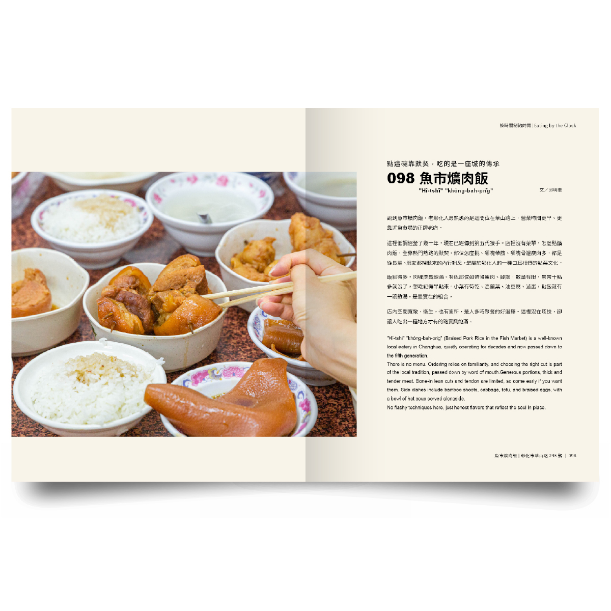 不陷入比較、不在迴圈中迷失自己。在彰化市這座小城,入夜時分彰化人圍著八卦山夜跑,清晨時分大口吃著爌肉飯,小城裡有著許多歷史無法記錄的日常。彰化人才懂的料湯、陸海交會的湯麵、青春永駐的香菇菜麵、手工製作的麻糬…等,這些不是美食型錄,是彰化人的日常。